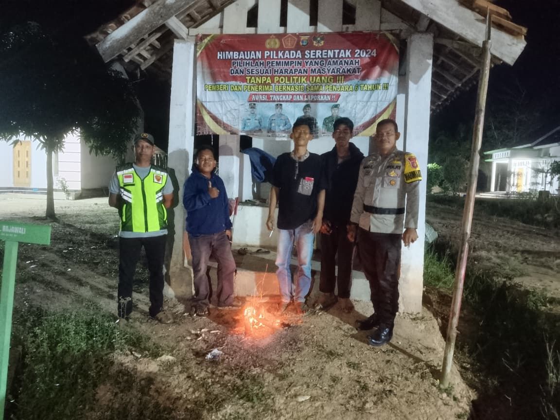 bhabinkamtibmas polsek simpang pematang sambang warga saat ronda di pos kamling desa margo makmur
