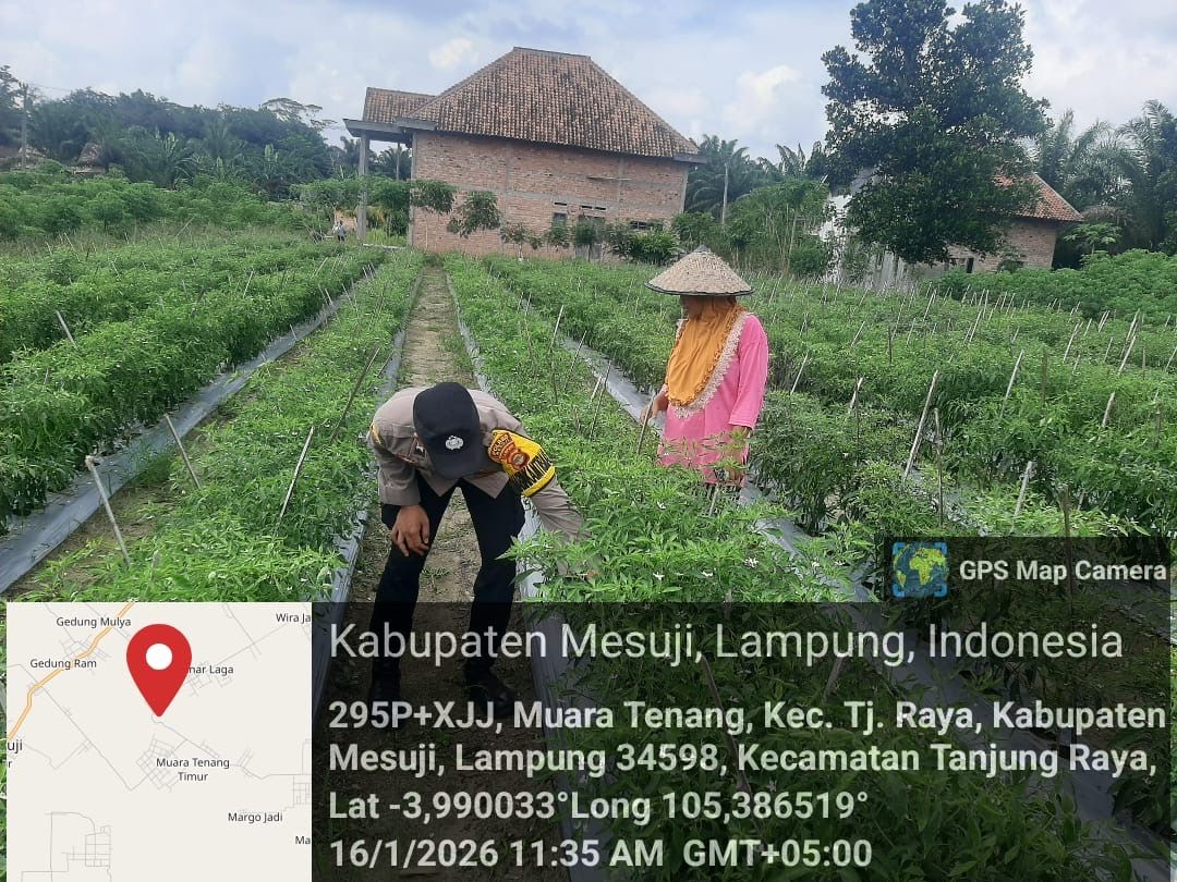 Bhabinkamtibmas Polsek Tanjung Raya melaksanakan kegiatan sambang dan pembinaan kepada para petani di Desa Muara Tenang, Kecamatan Tanjung Raya, Kabupaten Mesuji, sebagai upaya mendukung dan menyukseskan program ketahanan pangan.