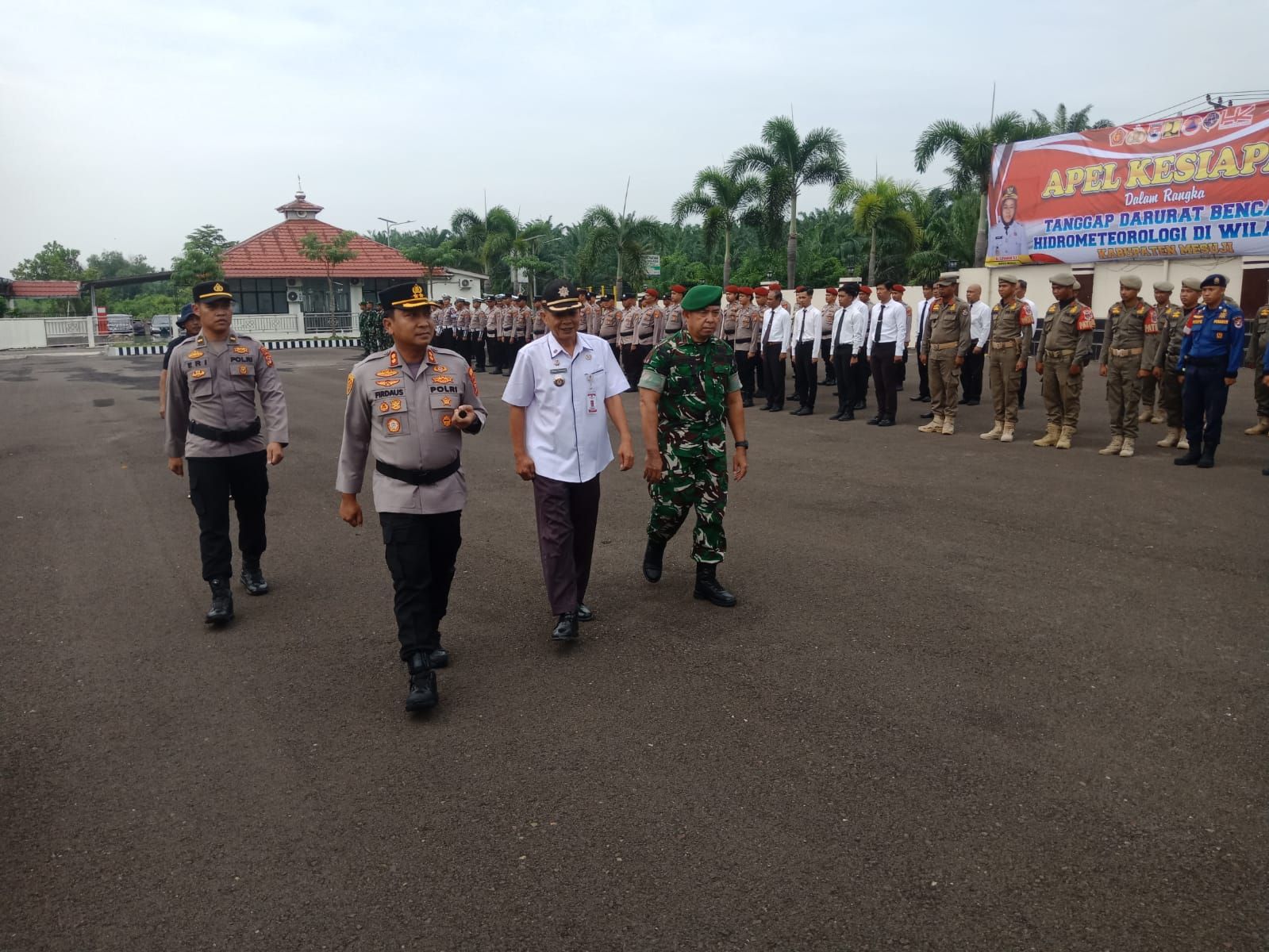 Jajaran Polres Mesuji bersama Forkopimda Kabupaten Mesuji dan Pihak terkait melaksanakan Apel Kesiapan tanggap darurat bencana Hidrometeorologi di Wilayah Kabupaten Mesuji