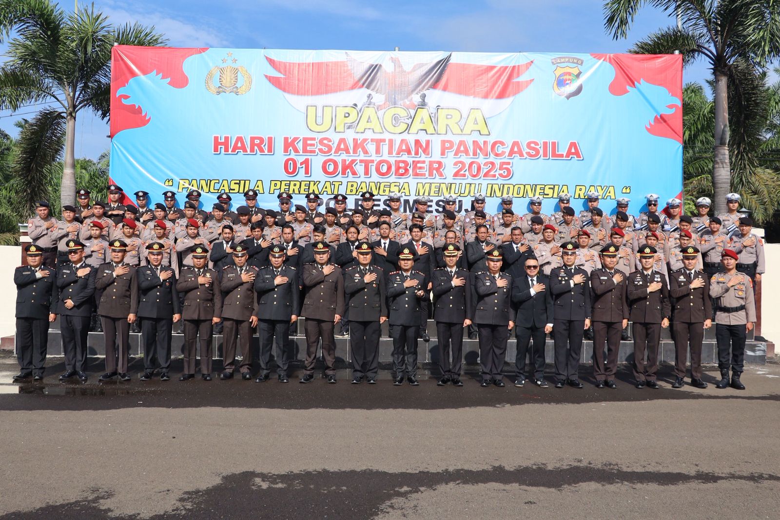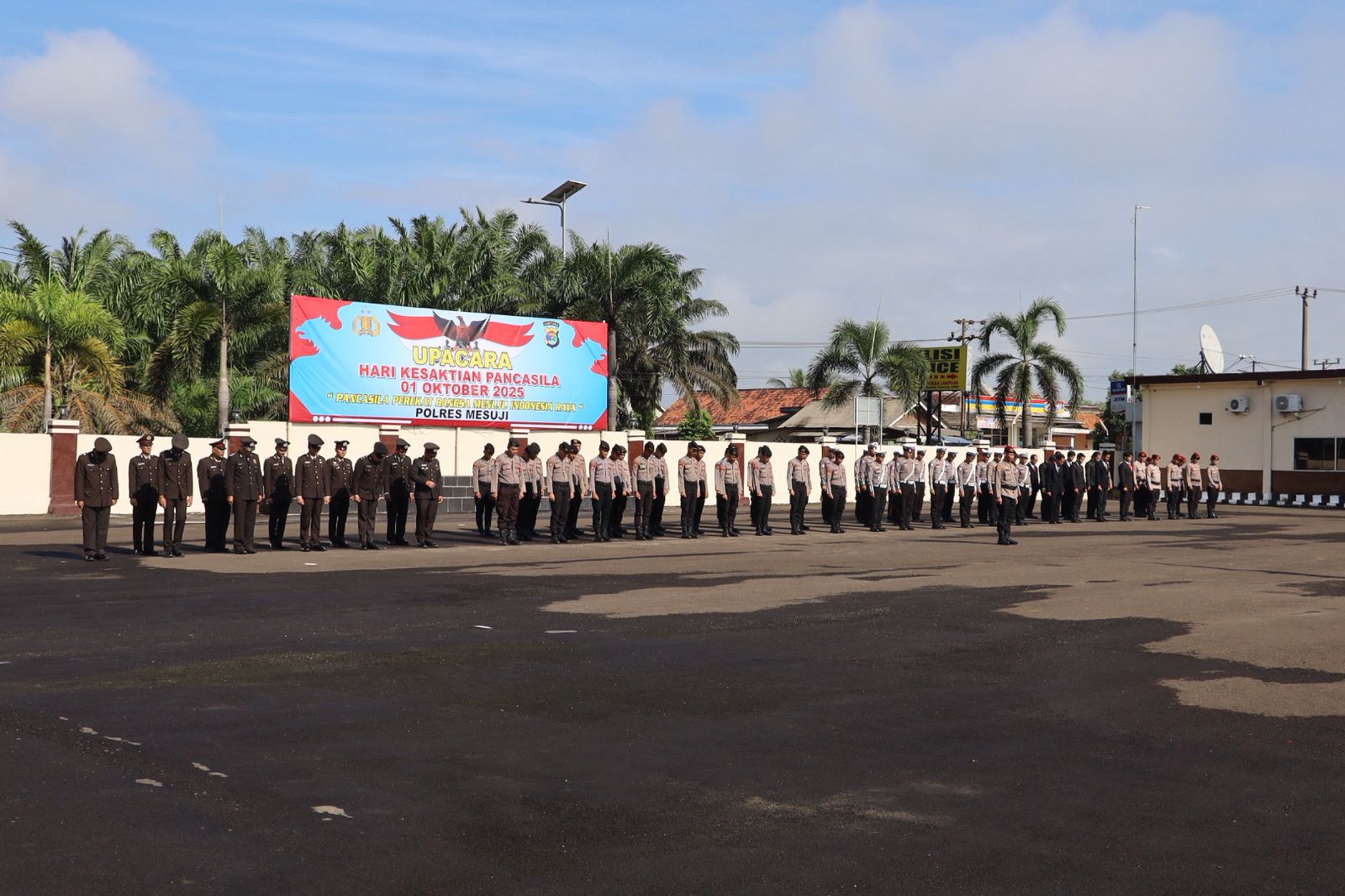 Jajaran Polres Mesuji melaksanakan Upacara Peringati Hari Kesaktian Pancasila dengan Tema “Pancasila Perekat Bangsa Menuju Indonesia Raya” bertempat di Lapangan Apel Mapolres setempat. Rabu (01/10/25)