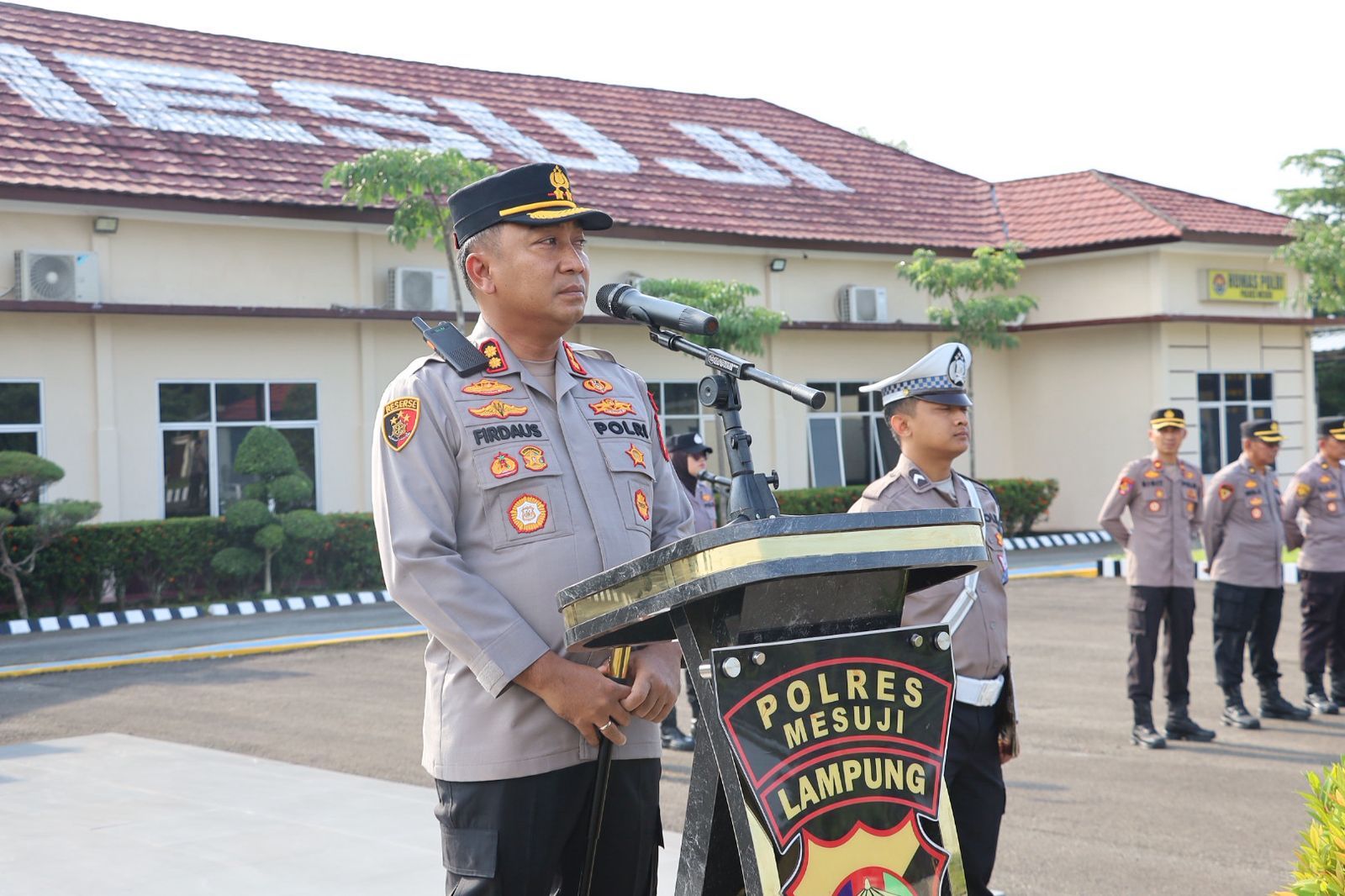 Kapolres Mesuji AKBP Dr. Muhammad Firdaus pimpin apel pagi di Mapolres Mesuji