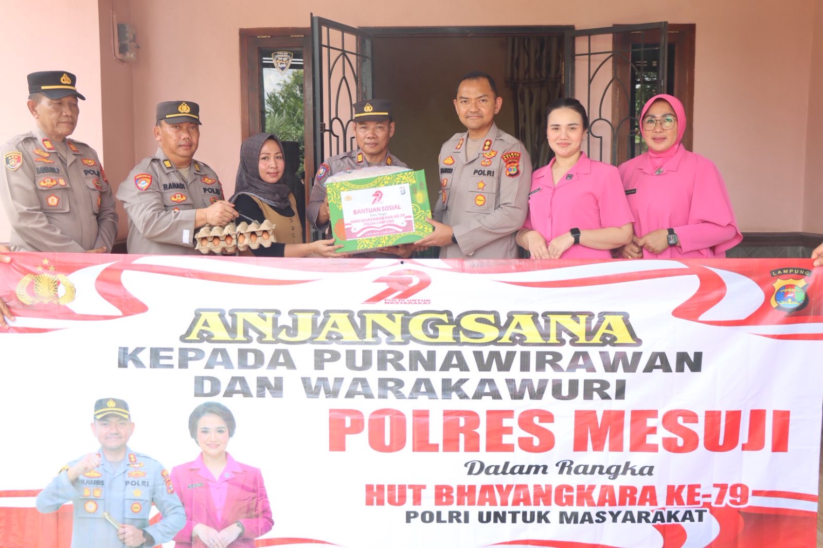 16/6 Dalam rangka memperingati Hari Bhayangkara ke-79 Tahun 2025, jajaran Polres Mesuji melaksanakan kegiatan anjangsana ke sejumlah kediaman Purnawirawan Polri yang berada di wilayah Kabupaten Mesuji. Kegiatan ini dipimpin langsung oleh Kapolres Mesuji AKBP Muhammad Harris, S.H., S.I.K., M.I.K., CPHR, didampingi Ketua Cabang Bhayangkari Polres Mesuji Ny. Meta Harris serta Pejabat Utama (PJU) Polres Mesuji.