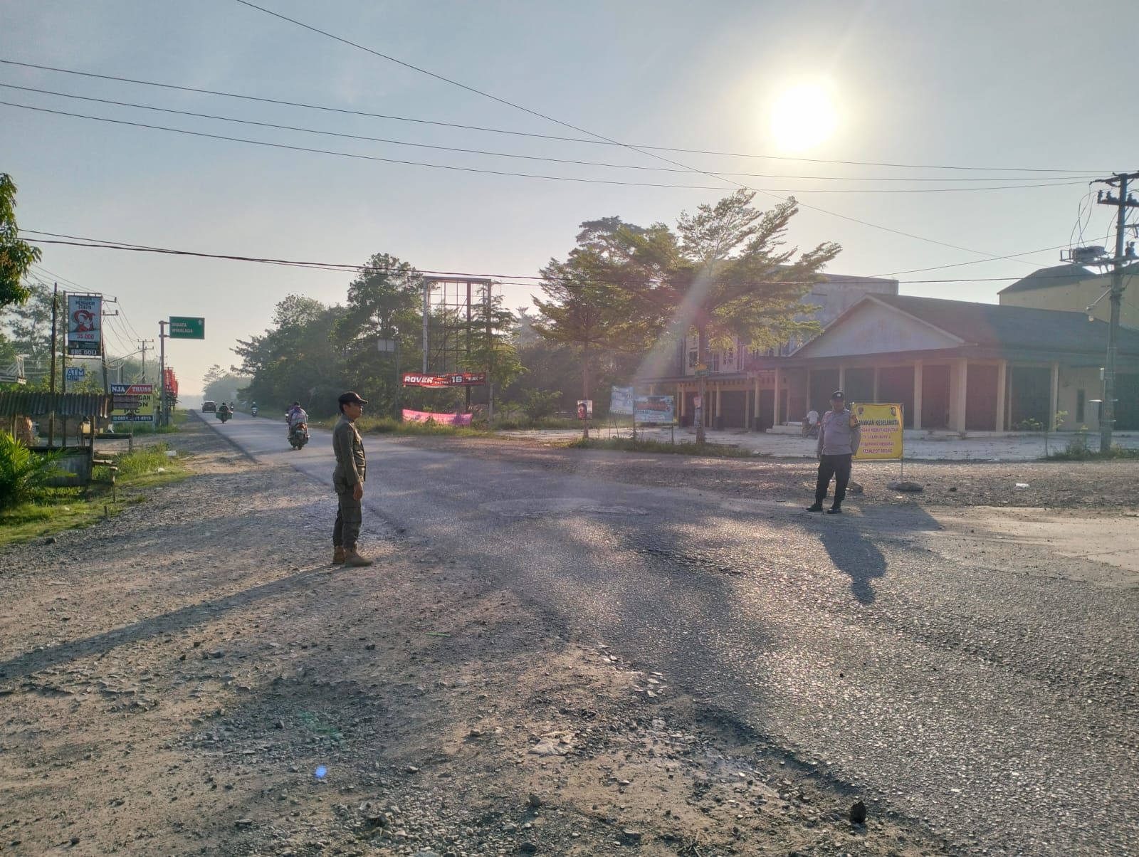 Polsek Tanjung Raya pengamanan rawan pagi gatur lalin di jalaan poros Desa Muktii Jaya