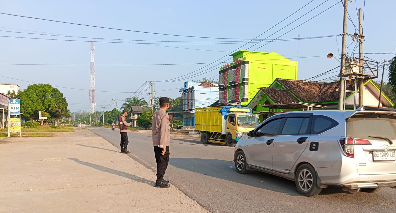 Polsek Tanjung Raya pengamanan rawan pagi gatur lalin di jalaan poross Desa Muktii Jaya